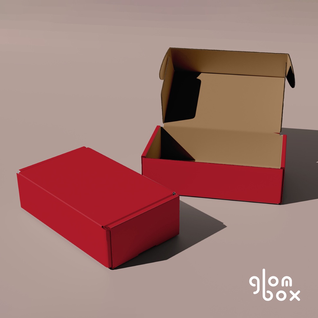 Glombox กล่องหูช้าง เบอร์ C กล่องลูกฟูก ฝาเสียบ กล่องพัสดุ กล่องพัสดุไปรษณีย์ สีแดง (25 กล่อง/แพ็ค)
