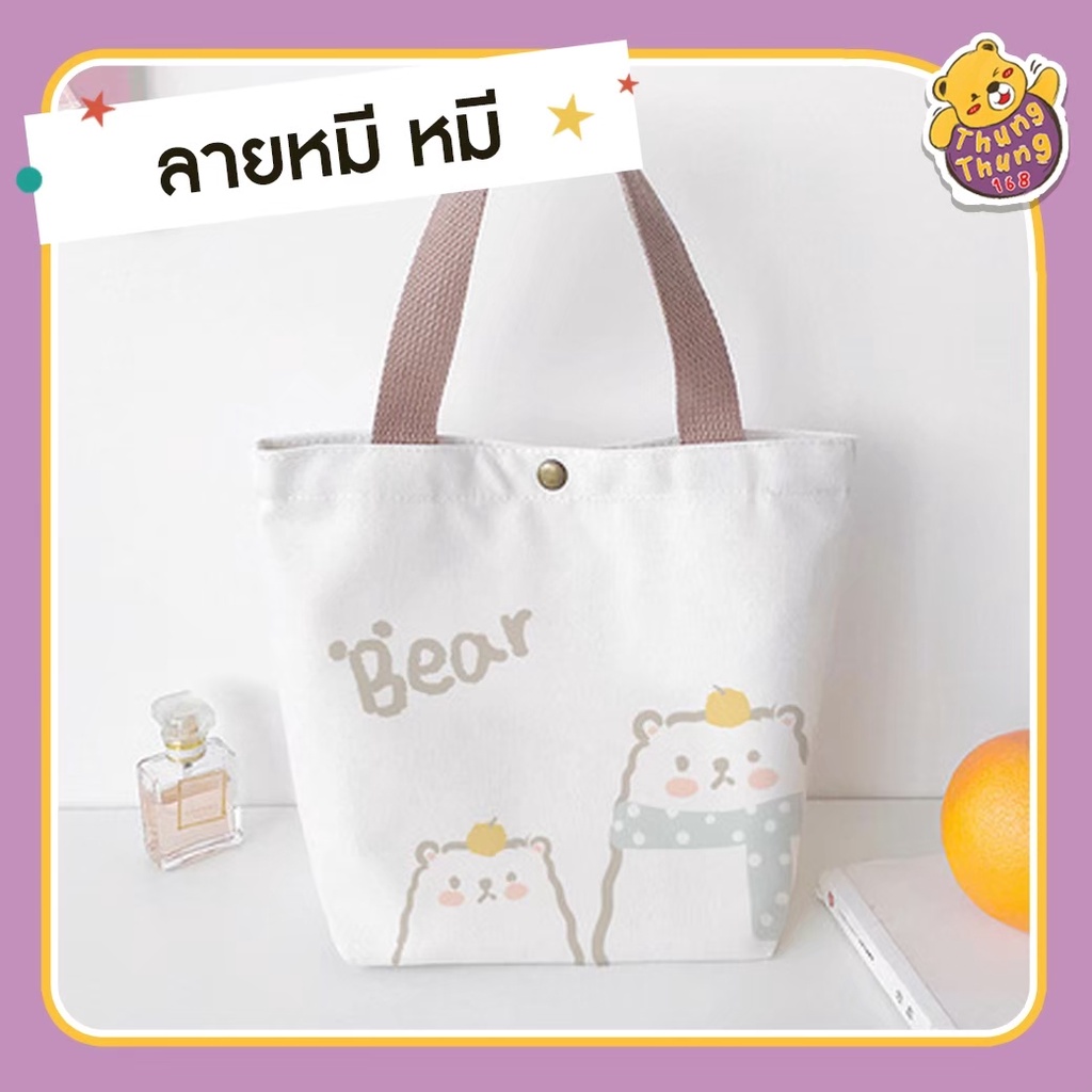 Matapat ถุงผ้า (ลายหมีหมี) กระเป๋าผ้าสไตล์ญี่ปุ่น กระเป๋าถือสะพายใหล่ กระเป๋าลายน่ารักๆ สินค้าพร้อมส่งจากไทย