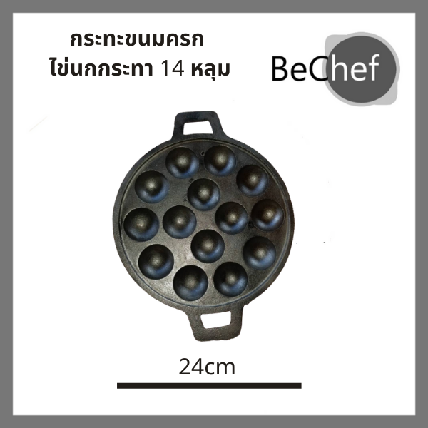 Bechef พิมพ์ ถาดหลุม เบ้า พิมพ์ขนมครก กระทะขนมครก เผาแล้ว กระทะขนมครก กระทะไข่นกกระทา เตาขนมครก ขนมครกญี่ปุ่น ทาโกะยากิ 14 หลุม ทำจาก เหล็กหล่