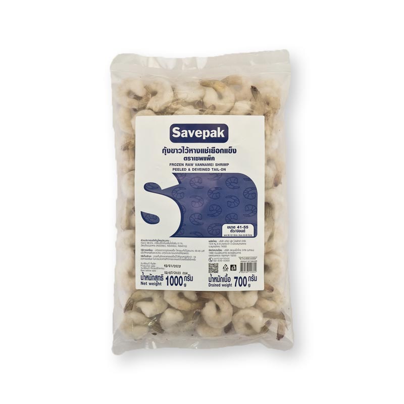 เซพแพ็ค กุ้งขาวไว้หางแช่แข็ง 63-85 ตัว/แพ็ค 1 กก.