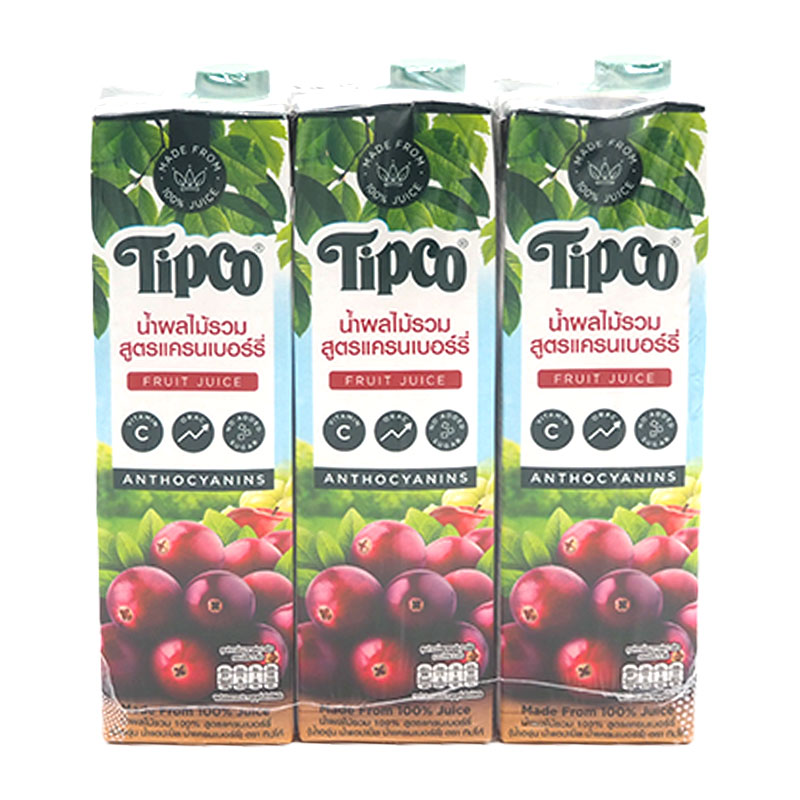 ทิปโก้ น้ำผลไม้รวม สูตรแครนเบอร์รี่ 100% 1 ล. x 3