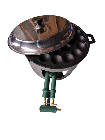 Bechef ชุดเตาขนมครก เผาแล้ว ชุดทำขนมครก เบ้าพิมพ์ขนมครกเหล็กหล่อพร้อมฝาสแตนเลส บังลมและหัวเตาแก๊ส c30