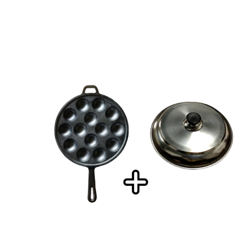 Bechef กระทะขนมครก ไข่นกกระทา รุ่นมีด้าม 14 หลุม เผาแล้ว พร้อมฝาอลูมิเนียม เบ้าขนมครก กระทะเหล็กหล่อ ทาโกะยากิ ใช้ได้กับเตาทุกแบบ