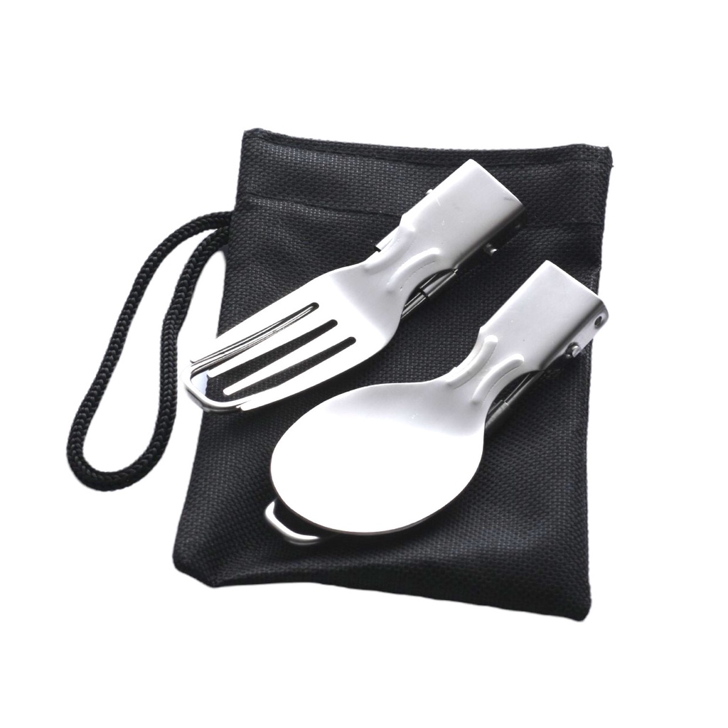 ชุดช้อนส้อมสแตนเลสพับได้พกพา || Stainless Steel Foldable Cutlery Set (Fork - Spoon)