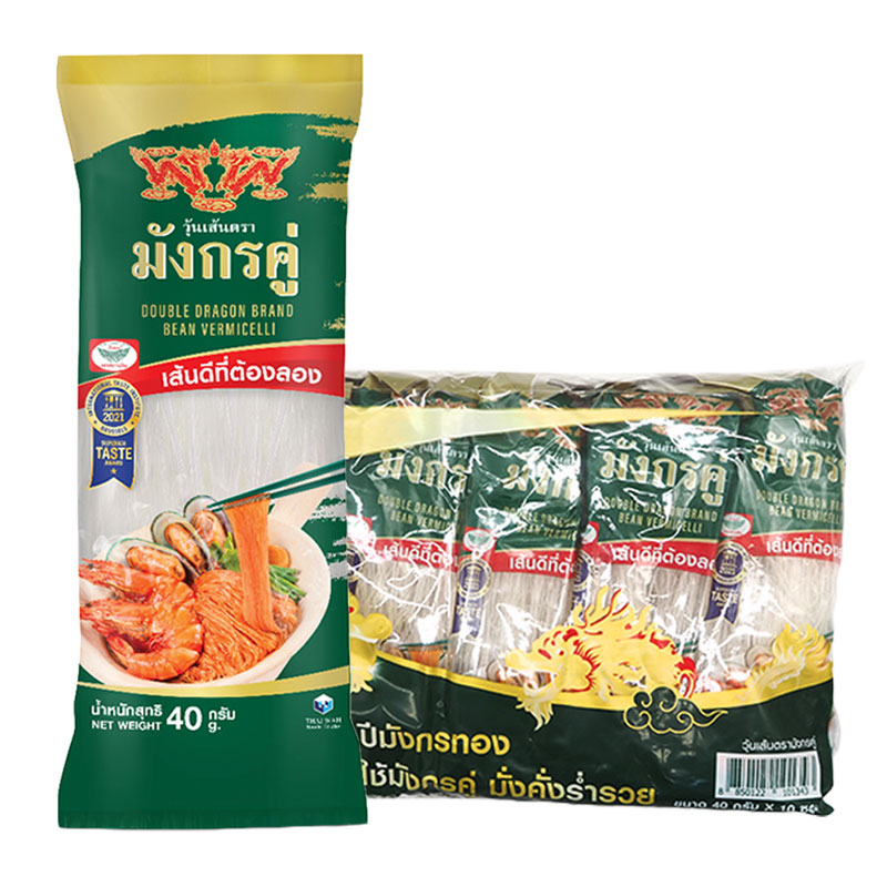- ชื่อสินค้า: มังกรคู่ วุ้นเส้น เกรดA 40 ก. x 10 - แบรนด์: มังกรคู่ - ปริมาณบรรจุ: 10 หน่วย