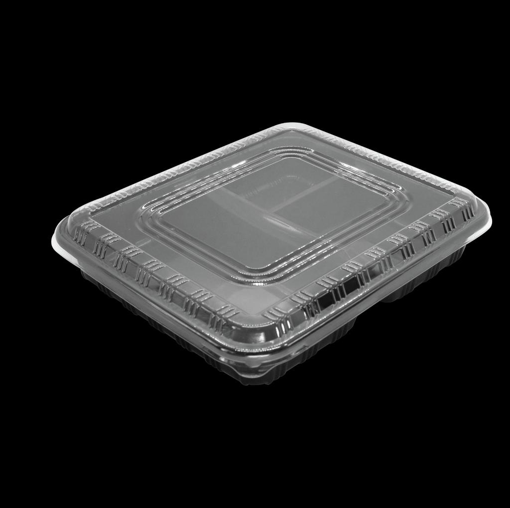 กล่องใส่อาหาร 3 ช่อง สีดำ พร้อมฝา TB-800-3 ขนาด กว้าง22 xยาว18.5 x สูง4 ซม. แพ็คละ 25 ใบ กล่องใส่อาหารหรือเบนโตะ 3ช่อง ใส่อาหารได้หลายช่อง ฝาปิดสนิทฝา OPS ใสกันฝ้า ซ้อนได้หลายชั้น เหมาะสำหรับนำไปใส่อาหารที่มีเครื่องเคียงเยอะๆ เช่น อาหารคลีน, ข้าวราดต่างๆ