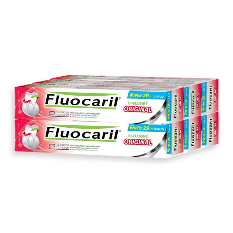 - ชื่อสินค้า: ฟลูโอคาริล ยาสีฟัน สูตรออริจินอล ขนาด 100 กรัม แพ็ค 6 กล่อง - แบรนด์: ฟลูโอคารีล - ปริมาณบรรจุ: 6 กล่อง