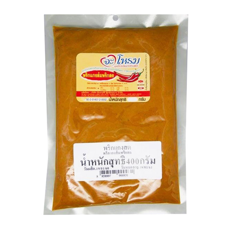 - ชื่อสินค้า: จะโหรม พริกแกงส้มพริกสด 400 ก. - แบรนด์: จะโหรม - ปริมาณบรรจุ: 1 หน่วย
