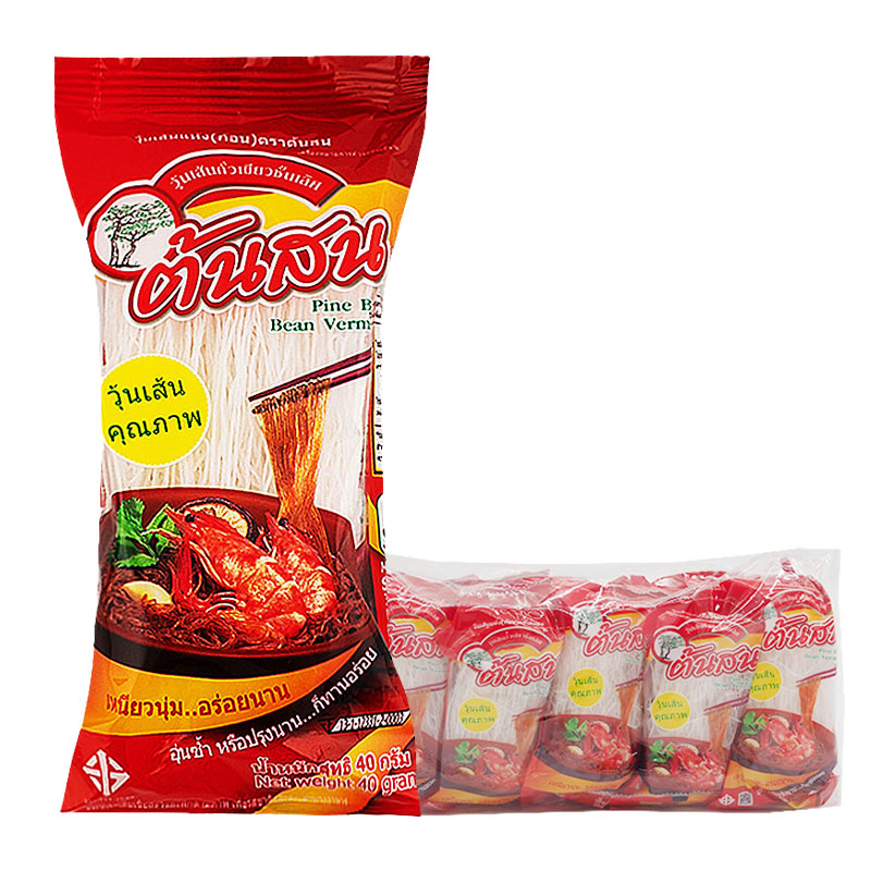 - ชื่อสินค้า: ต้นสน วุ้นเส้น 40 ก. x 10 - แบรนด์: ต้นสน - ปริมาณบรรจุ: 10 หน่วย