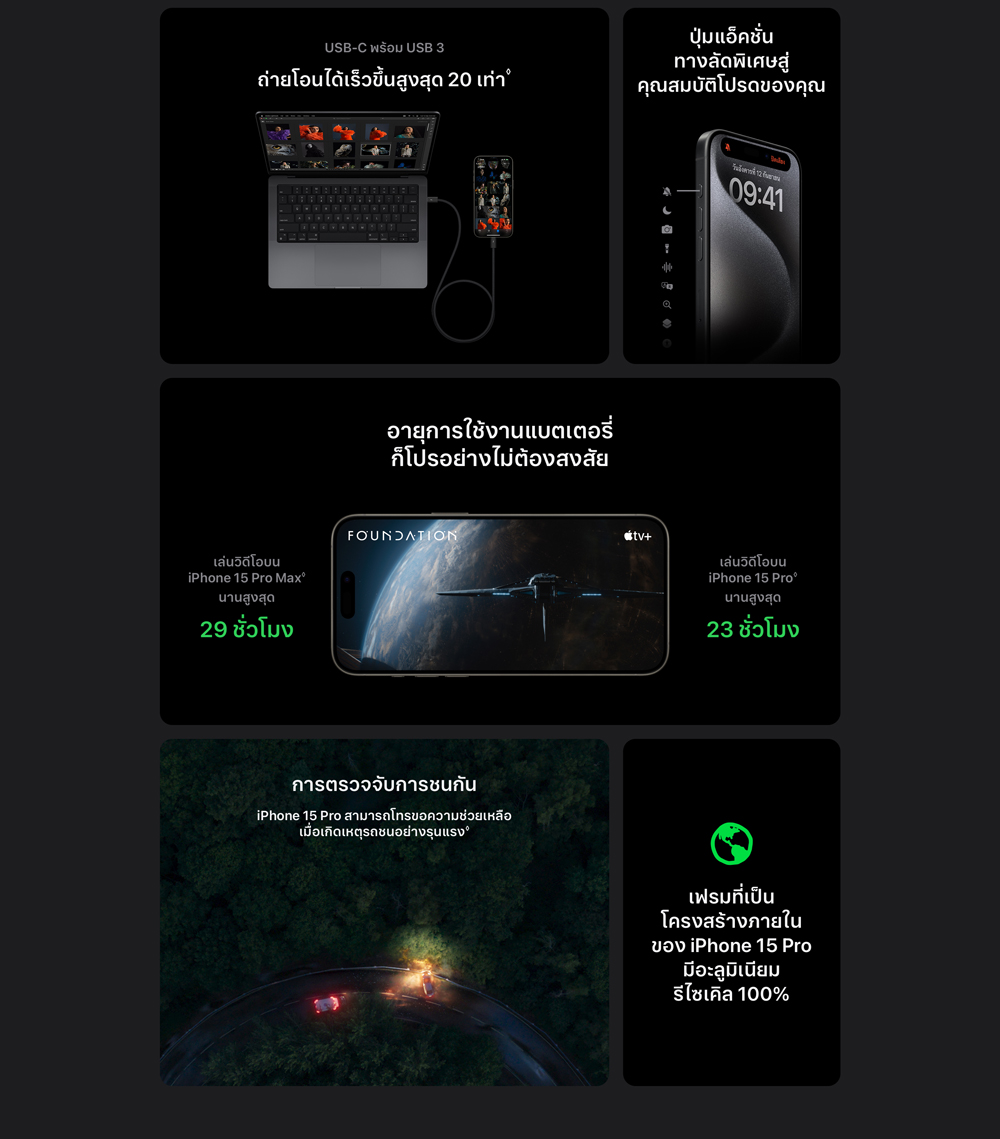 • Option : In the Box : iPhone with iOS 17, USB‑C Charge Cable (1 m), Documentation