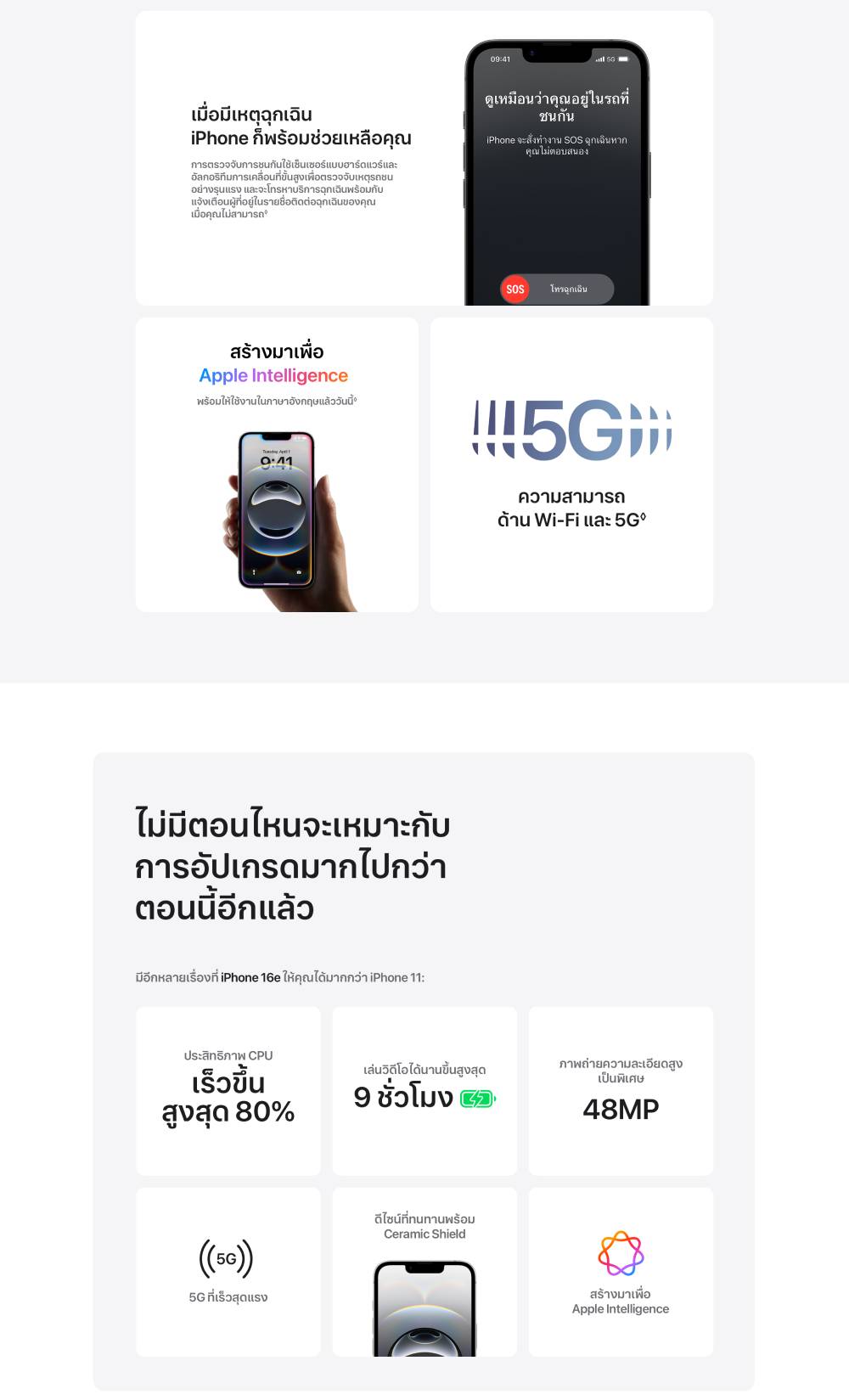 • ชิป A18 เร็วทะยานสู่อนาคต—ชิป A18 คือขุมพลังที่ขับเคลื่อนแบตเตอรี่ให้ใช้งานได้ตลอดวัน การเล่นเกม รวมถึงการอัปเดต iOS เป็นประจำ คุณจึงเหมือนได้ใช้ iPhone เครื่องใหม่ไปอีกนานหลายปี