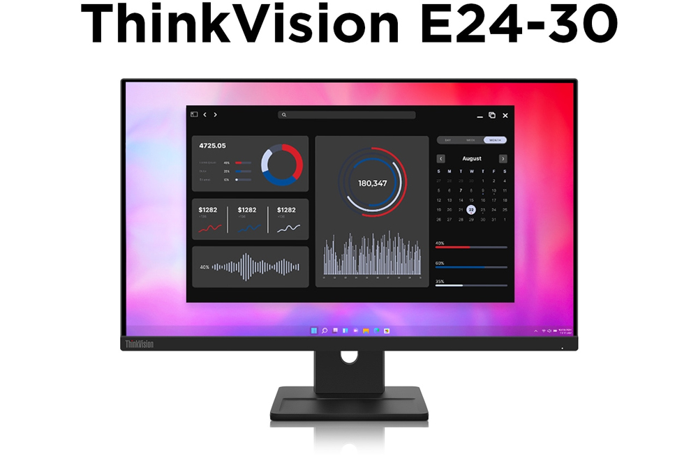 จอภาพ ThinkVision E24-30 มาพร้อมกับลำโพงในตัว จึงให้ประสบการณ์ด้านเสียงอันยอดเยี่ยมอย่างที่ไม่ต้องใช้อุปกรณ์อื่นๆ เพิ่มเติม ดีไซน์นี้ช่วยให้คุณประหยัดพื้นที่บนโต๊ะ และลดความเกะกะของสายเคเบิล ทำให้ได้โต๊ะใช้งานที่มีประสิทธิผลและดูดีเพื่อความสะดวกสะอาดตา