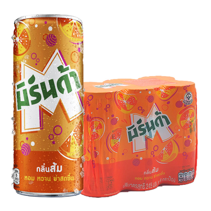 มิรินด้า สลิมแคน เครื่องดื่มน้ำอัดลม กลิ่นส้ม 245 มล. 6 กระป๋อง