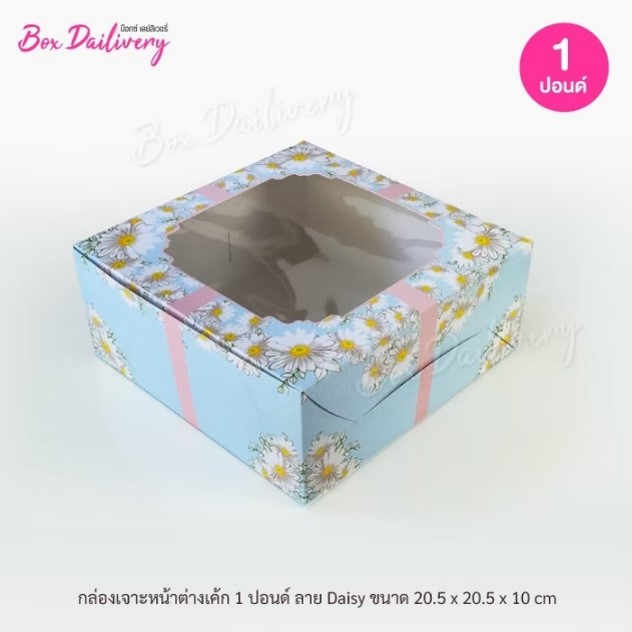 กล่องเค้ก ไซส์ 1ปอนด์ พิมพ์ลาย แพค100ใบ -Daisy