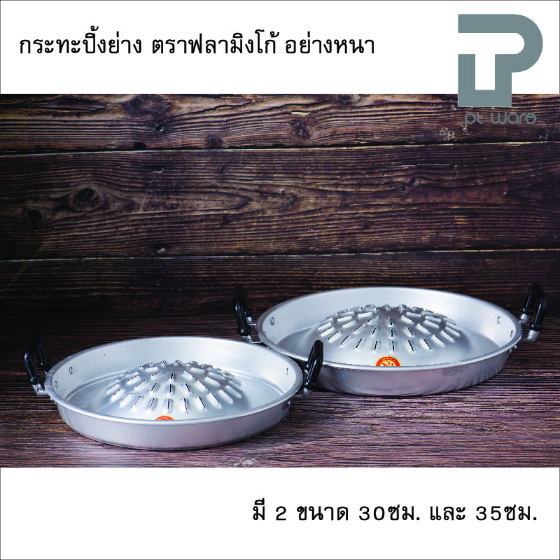 PT ware กระทะหมูกระทะ กระทะย่างเกาหลี กระทะปิ้งย่าง อย่างหนา ตราฟลามิงโก้ ขนาด 30-35 ซม.