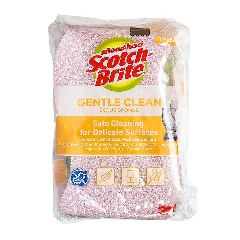 สีชมพู สำหรับภาชนะเนื้อละเอียด ฟองน้ำมีสารช่วยยับยั้งการเติบโตของแบคทีเรีย