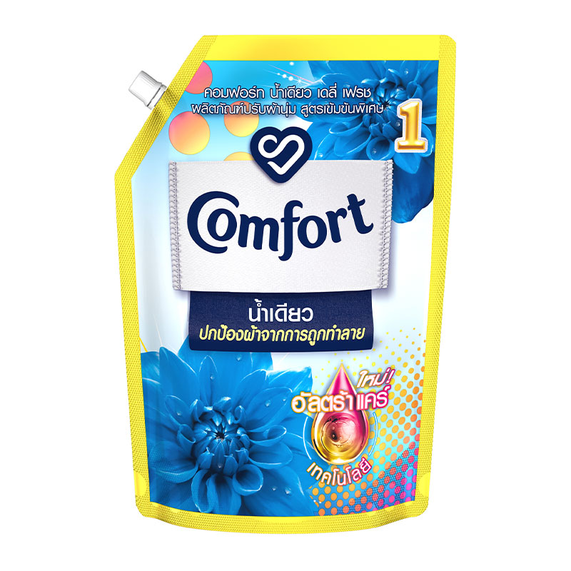 คอมฟอร์ท อัลตร้าน้ำเดียว น้ำยาปรับผ้านุ่ม สูตรเข้มข้น กลิ่นเดลี่เฟรช สีฟ้า 1.05 ล.