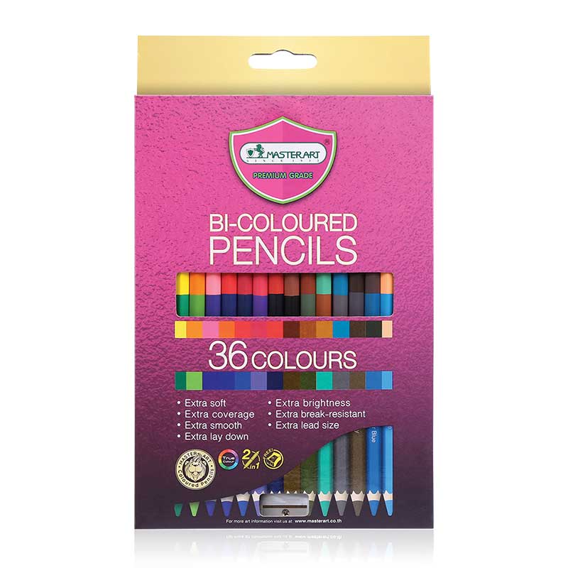 - สีมาสเตอร์อาร์ต ขนาด 36 สี 2 หัว - ระบายง่าย สีสันสวยงาม - ด้ามทรงเหลี่ยมจับกระชับมือ - ผลิตจากไม้คุณภาพดี เหลาง่าย ไม่โก่งงอ