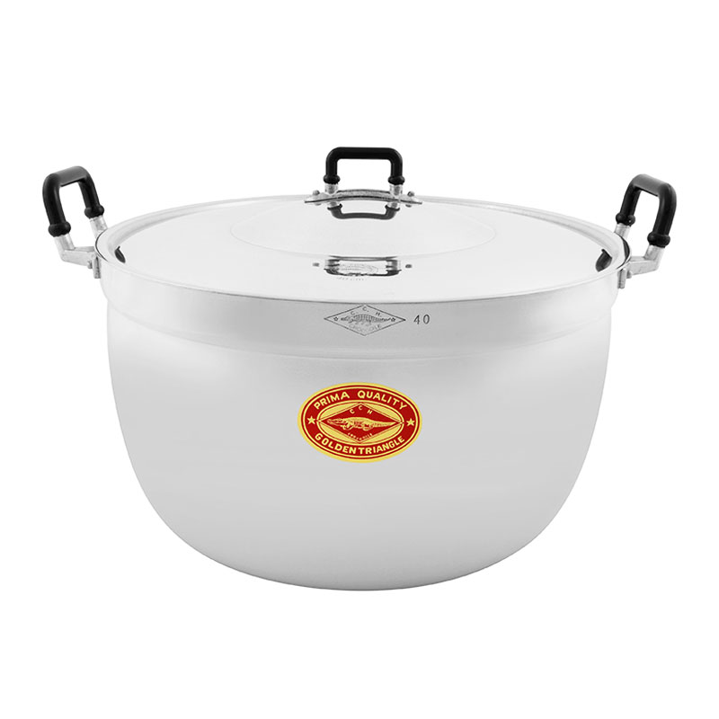 หม้อตราจระเข้ เป็นหม้ออลูมิเนียม เหมาะสำหรับใช้กับทุกครัวเรือน - ทรงหม้อมาตรฐานใช้งานได้อเนกประสงค์ - หูจับหม้อและที่จับฝาหม้อ ทำจากแบ็กกาไลท์ทนความร้อน - เส้นผ่านศูนย์กลาง 40 ซม. - สูง 21.5 ซม. - ความจุ 25.7 ลิตร
