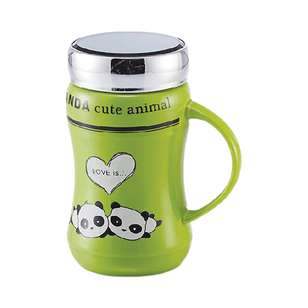 แก้วน้ำเซรามิคลายหมีแพนด้าพร้อมฝาปิด สีเขียว