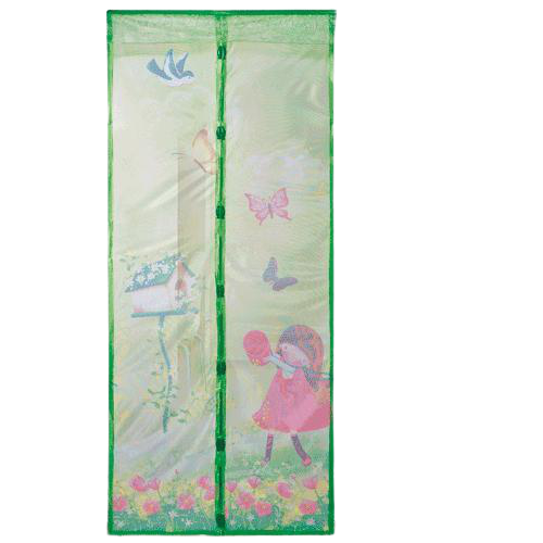 ม่านประตูกันยุงลายผีเสื้อและเด็กผู้หญิง สีเขียว