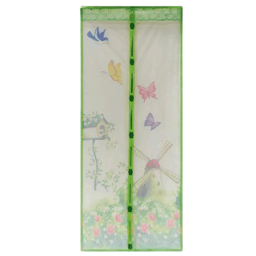 ม่านประตูกันยุงแถบแม่เหล็กลายสวนสวยชวนฝัน สีเขียว