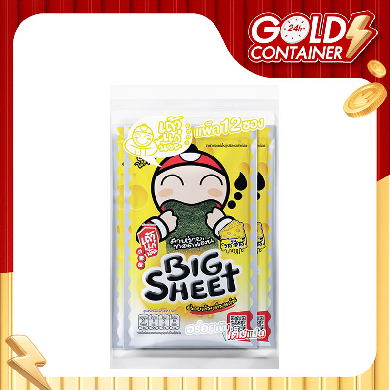 - ชื่อสินค้า: เถ้าแก่น้อย บิ๊กชีท สาหร่ายทอดแผ่น รสชีส 3.2 ก. x 12