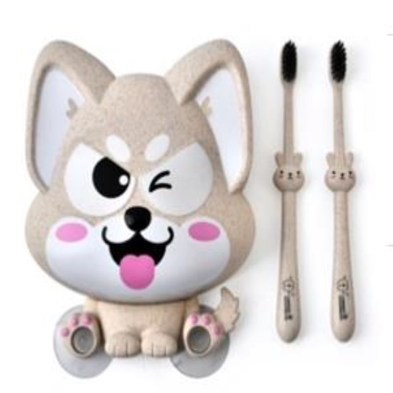 เซตที่เก็บแปรงสีฟันเด็กลายการ์ตูนน้องหมา สีครีม