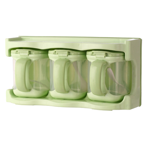 กระปุกใส่เครื่องปรุง 3 ช่อง พร้อมช้อนตัก มีฝาปิด ถอดออกได้ คละสี 10 x 27 x 23 cm. สีเขียว