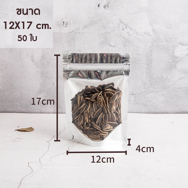 Matapat ถุงฟอยด์เงิน (12x17 (บรรจุ50ใบ)) ถุงซิปล็อคตั้งได้ ด้านหน้าใสหลังเงิน ถุงฟอยด์สีเงิน ถุงขนม ซองขนม (บรรจุ50ใบ)