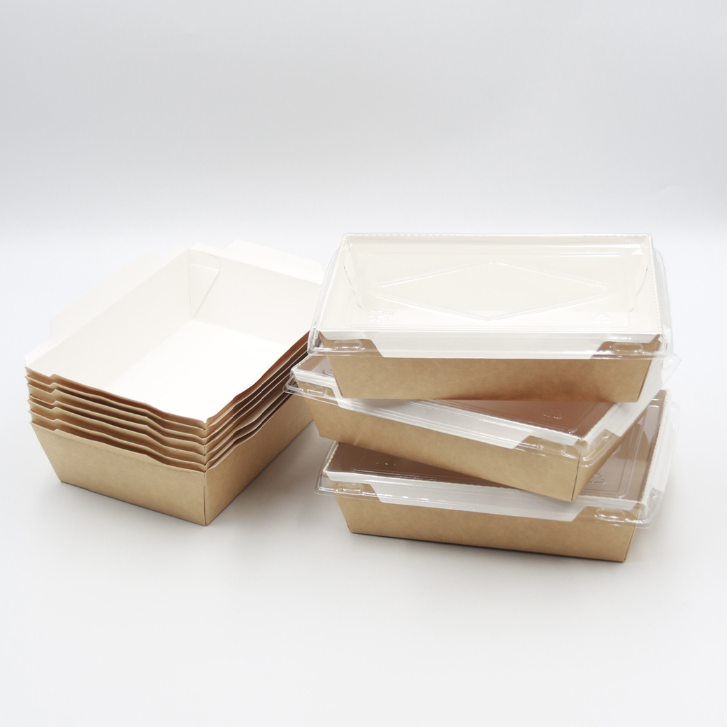 OPure กล่องใส่อาหารกระดาษ สี่เหลี่ยมฝาปิด สีคราฟท์-ขาว ขนาด 700 มล. จำนวน 200 ชิ้น