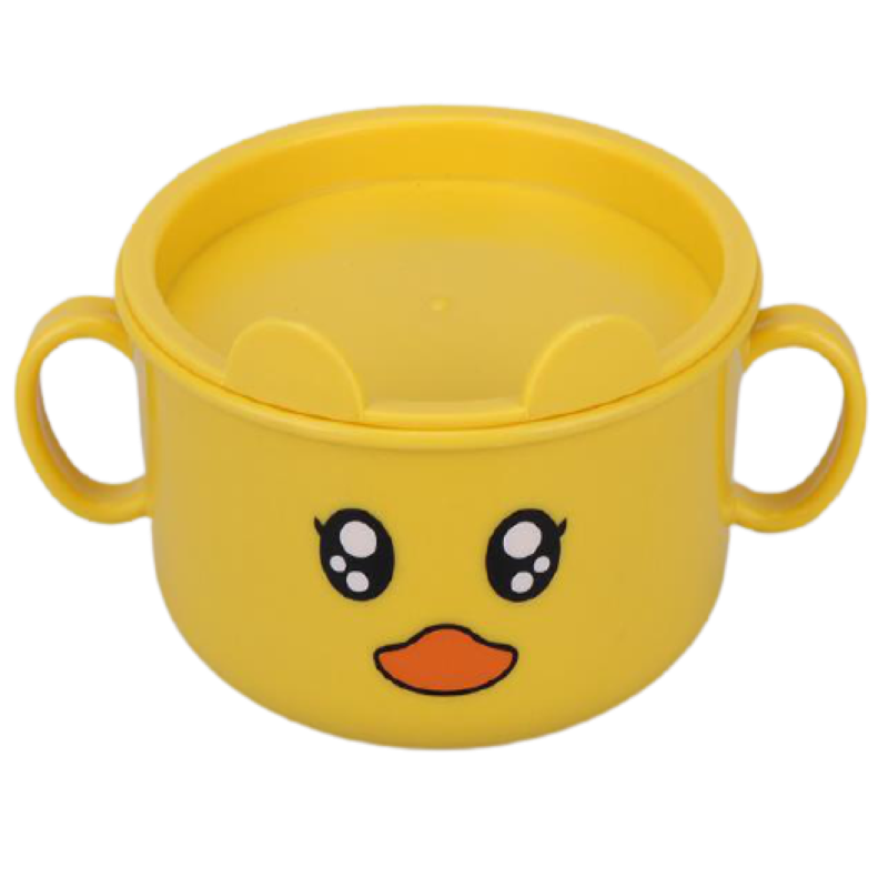 ถ้วยพร้อมฝาปิดมีหูจับสำหรับเด็ก ลายเป็ด สีเหลือง