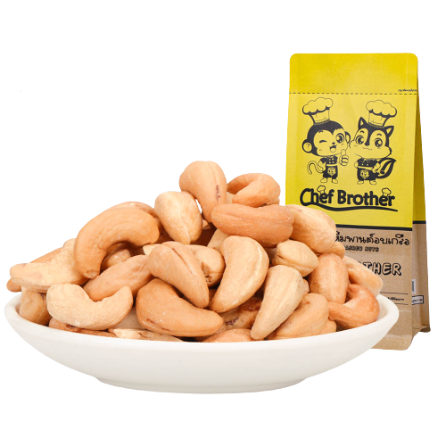 เม็ดมะม่วงหิมพานต์อบเกลือ ( Salted Cashewsnut ) พร้อมทานคัดสรรวัตถุดิบเม็ดมะม่วงหิมพานต์คุณภาพเยี่ยม รสชาติอร่อยเคี้ยวมัน ปรับอุณหภูมิที่เหมาะสมกับการอบ การอบแห้งอย่างดี ได้มาตรฐานเพื่อไม่ให้สูญเสียสารอาหาร น้ำหนัก 60 กรัม 1 ถุง บรรจุ 6 ซอง ซองละ 10 กรัม แกะทานง่าย และไม่ทำให้อับชื้น พกพาสะดวก แบรนด์ CHEF BROTHER เลขทะเบียน อย.11-2-03258-6-0253