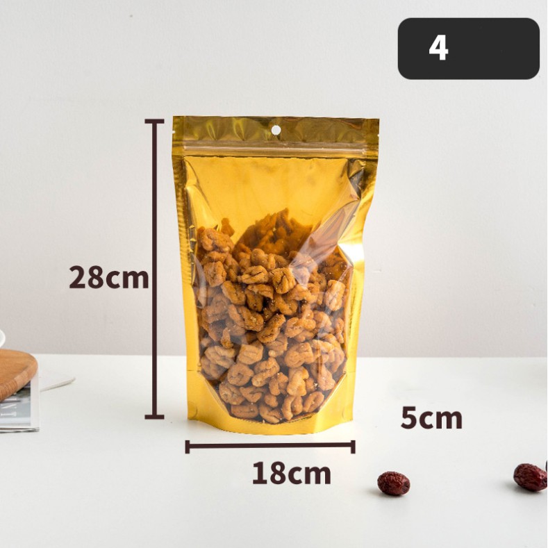 Matapat ถุงฟอยด์ทอง (ทอง 18x28 +5 cm.) ถุงซิปล็อคตั้งได้ ด้านหน้าใสหลังทอง ถุงฟอยด์สีทอง ถุงขนม ซองขนม (บรรจุ25ใบ)