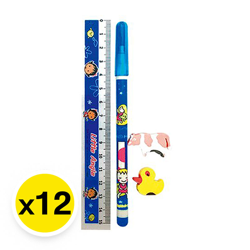 ชุดดินสอต่อไส้+ไม้บรรทัด 6 นิ้ว ยางลบ แพ็ค 12 ชุด