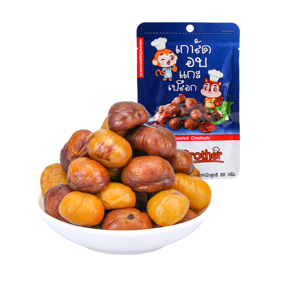 เกาลัด (Chestnut ) อบแกะเปลือกพร้อมทาน คัดสรรวัตถุดิบคุณภาพเยี่ยมรสชาติอร่อยเคี้ยวมัน น้ำหนัก 80 กรัม /ถุง ( 6 ถุง/แพ็ค ) แบรนด์ CHEF BROTHE เลขทะเบียน อย.10-3-33362-5-0001