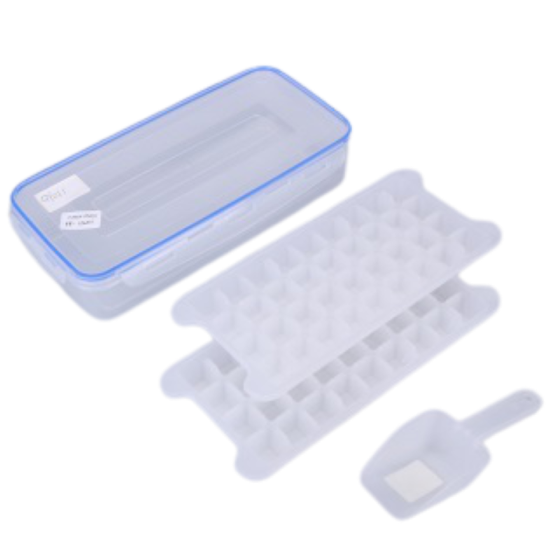ผลิตจากวัสดุ : พลาสติก จุดเด่น/ประโยชน์ : ชุดกล่องพิมพ์ทำน้ำแข็งก้อน สำหรับทำน้ำแข็งขนาดเล็กไว้รับประทานเองในบ้ าน ใส่กับเครื่องดื่มได้หลากหลาย มีช่องถึง 36 ช่อง/ถาด ถาดพิมพ์น้ำแข็งยืดหยุ่นได้ ปลอดภัยไร้กลิ่นและใช้งานง่ายเพียงบีบเบาๆ ในชุดประกอบด้วย 1.ถาดพิมพ์ทำน้ำแข็งก้อน 2 ถาด ขนาด กว้าง 12 ซม.x ยาว 23 ซม.x สูง 2 ซม.2.ที่ตักน้ำแข็ง ขนาด กว้าง 5 ซม.x ยาว 16 ซม. 3..กล่องใส่น้ำแข็ง ขนาด กว้าง 14 ซม.x ยาว 28 ซม.x สูง 5.5 ซม.
