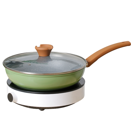 Bechef กระทะเคลือบเซรามิคสีเขียว กระทะพร้อมฝา กระทะพสามารถใช้กับเตาแม่เหล็กไฟฟ้าได้ กระทะเคลือบ กระทะผัด กระทะทอด กระทะย่าง