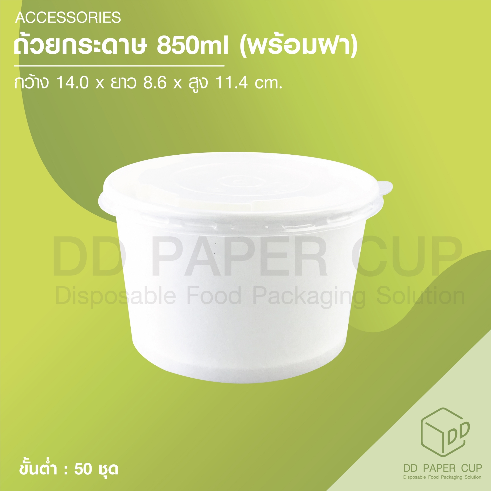 DD PAPERCUP ถ้วยกระดาษขาว (เงา) ขนาด 850 ซีซี พร้อมฝา x 50 ชุด
