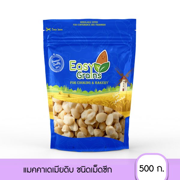 Easy Grains แมคคาเดเมียดิบ ชนิดซีก Raw Split Macadamias 500 กรัม