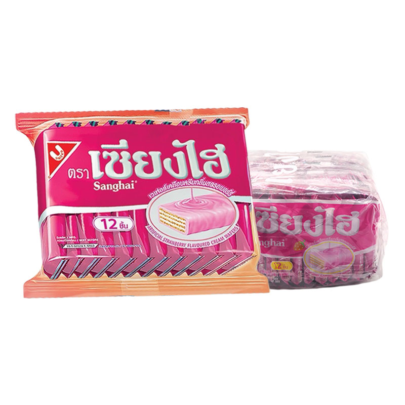 เซียงไฮ เวเฟอร์เคลือบครีมรสสตรอเบอร์รี่ 12 ชิ้น x 6