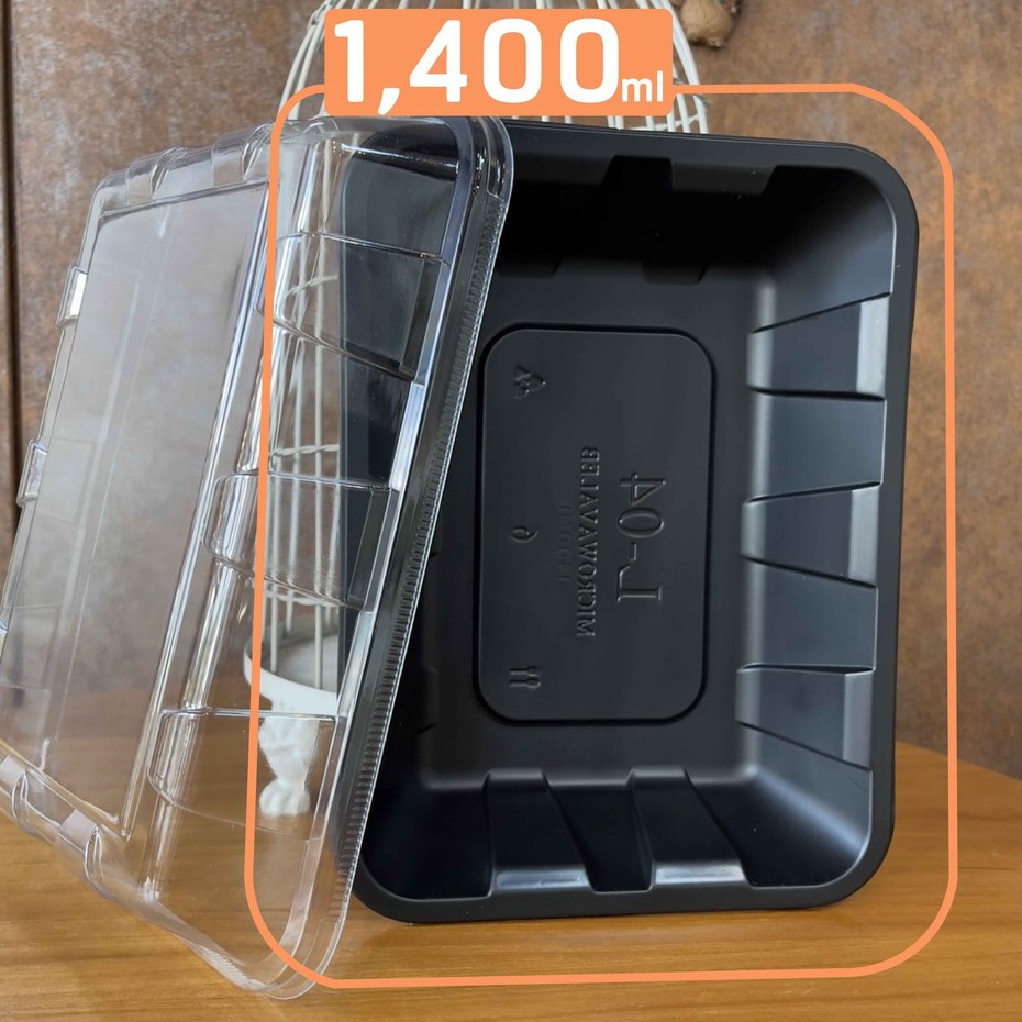 Matapat กล่องสเต็ก () กล่องสลัดโรล สีดำ ฝาใส 1 ช่อง 1400มล. กล่องอาหารจัมโบ้ เดลิเวอรี่ FoodGrade เข้าไมโครเวฟได้ (แพค 25 ชิ้น