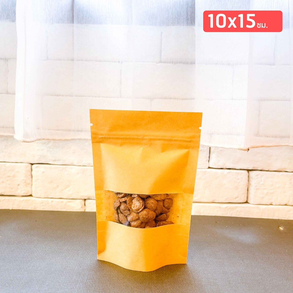 Matapat ถุงคราฟท์ ถุงซิปล็อคตั้งได้ (10x15 (บรรจุ25ใบ)) ถุงคราฟท์หน้าต่างใส มีซิปล็อค เคลือบด้านใน brown Kraft zip lock ซองเมล็ดพันธุ์ ซองใส่ขนม