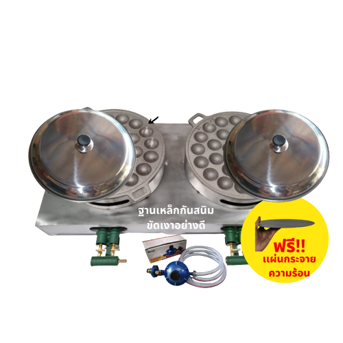 Bechef ชุดเตาขนมครกเตาแก๊สคู่ 28 และ 32 หลุม ขนมครก กระทะขนมครก พิมพ์ขนมครก พร้อมฐาน แถมแผ่นกระจายความร้อนทุกชุด