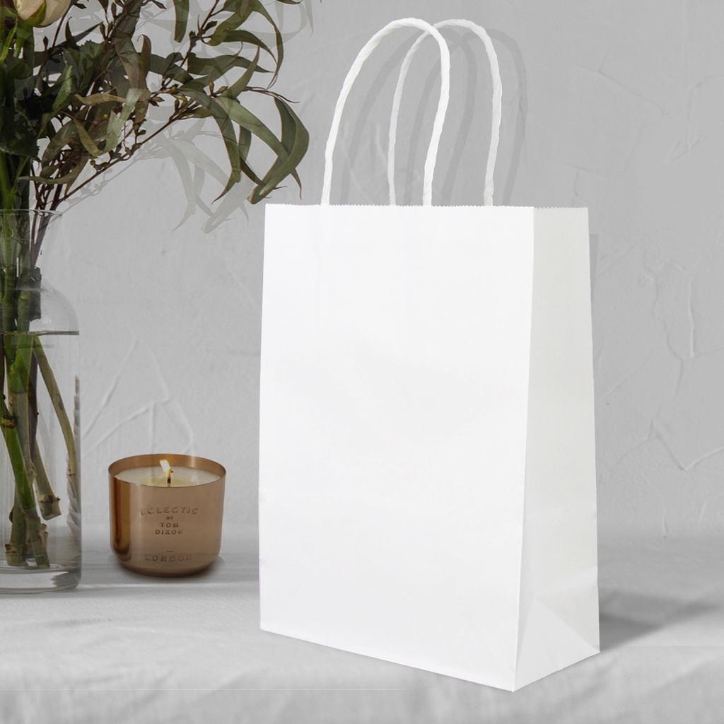 ถุงหูหิ้วกระดาษสีขาว ( หูเกลียว) ผลิตจากกระดาษสีขาว 125 แกรม ติดหูเกลียวกระดาษสีขาว มี 5 ขนาด ขนาด / จำนวนใบ เบอร์ 1 15.5x7x21 ซม. 1 แพค บรรจุ 50 ใบ เบอร์ 2 22x13x25 ซม. 1 แพค บรรจุ 20 ใบ เบอร์ 3 27x11x27 ซม. 1 แพค บรรจุ 20 ใบ เบอร์ 4 32x11x27 ซม. 1 แพ็ค บรรจุ 20 ใบ เบอร์ใส่กล่องข้าว 21x12x29 ซม. 1 แพ็ค บรรจุ 20 ใบ รายละเอียดการจัดส่ง สินค้า --> มีสินค้าพร้อมส่ง จัดส่งรวดเร็ว ทุกวันจันทร์ - เสาร์ --> สินค้าทุกชิ้นผ่านการตรวจสอบคุณภาพแล้ว --> หากพบปัญหา ทางร้านเรามี Admin คอยให้บริการ 7.30น.-17.00น. --> จัดส่งโดย ขนส่ง Best Express / Kerry / J&T --> มีบริการเก็บเงินปลายทาง (COD) ****************************************** *** โปรดอ่านก่อนสั่งซื้อ *** • ทางร้านไม่สามารถแก้ไขข้อมูลชื่อ ที่อยู่ เบอร์โทรคุณลูกค้า หลังได้รับคำสั่งซื้อเข้ามาในระบบ กรุณาตรวจสอบข้อมูลให้ถูกต้องก่อนการกดสั่งซื้อสินค้าทุกครั้ง หากข้อมูลผิด รบกวนทำการยกเลิกออเดอร์แล้วสั่งซื้อเข้ามาใหม่นะคะ • ทางร้านไม่รับเปลี่ยนหรือคืนทุกกรณี ยกเว้นความผิดพลาดอันเนื่องมาจากจัดส่งสินค้าผิด • ทางร้านต้องขออภัยในกรณีสินค้าหมด ขออนุญาตยกเลิกคำสั่งซื้อ หรือคืนเงินส่วนต่างให้กับคุณลูกค้า ****************************************** #ถุงกระดาษ #บรรจุภัณฑ์ #ถุงใส่เบรค #ราคาถูก #แพคเกจจิ้ง #ถุงกระดาษหูหิ้วสีขาว #ถุงกระดาษหูหิ้ว #สีขาว