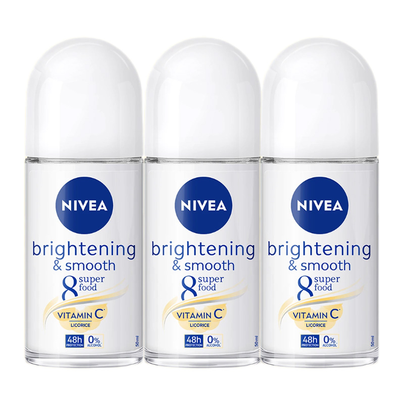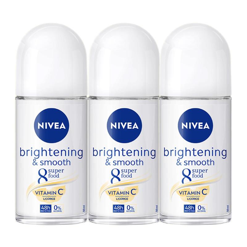 นีเวีย ไบรท์เทนนิ่ง แอนด์ สมูท โรลออน 50 มล. x 3