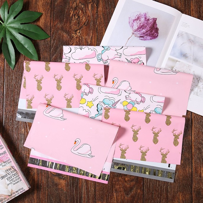 Matapat ซองไปรษณีย์สีพาสเทล สีชมพู (คละลาย,M 26x33 ซม.) ลายน่ารัก ซองพลาสติกไปรษณีย์ ซองพัสดุ ซองไปรษณีย์พลาสติก ซองจดหมายพาสเทล