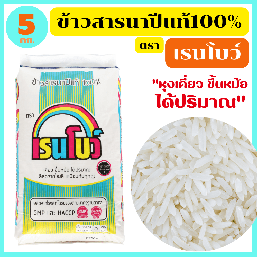 เรนโบว์ ข้าวเก่านครสวรรค์แท้ หุงขึ้นหม้อ ได้ปริมาณ เย็นแล้วนุ่มนวล อุ่นกี่ครั้งก็อร่อยเหมือนเดิม ขนาด 5 กก.