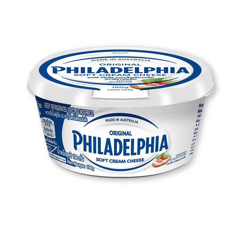 - ชื่อสินค้า: ฟิลาเดลเฟีย ไลท์ครีมชีสนุ่ม 190 ก. - แบรนด์: ฟิลาเดลเฟีย - ปริมาณบรรจุ: 1 หน่วย