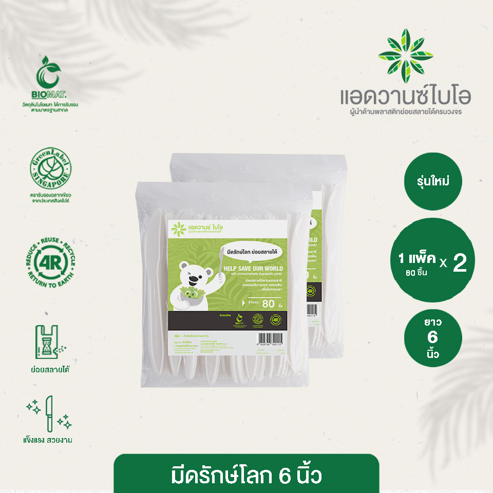 มีดรักษ์โลก-ขาว 6 สีขาวธรรมชาติ x 2 แพ็ค